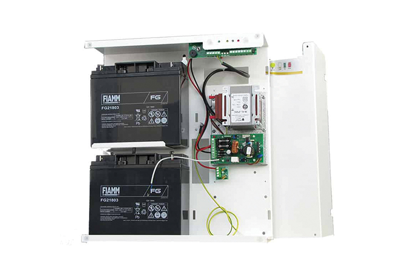 Unità di alimentazione ausiliaria per sistemi di antincendio con alimentatore a 27,6 Vdc.